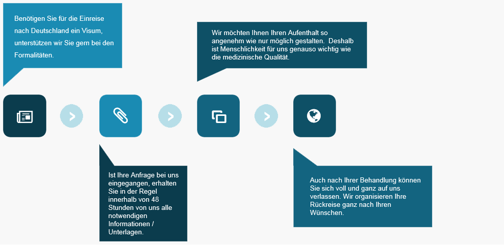 Unser Fokus liegt bei der Organisation von Krankenhausaufenthalten speziell auf Patienten aus der MENA Region (Middle East & North Africa).